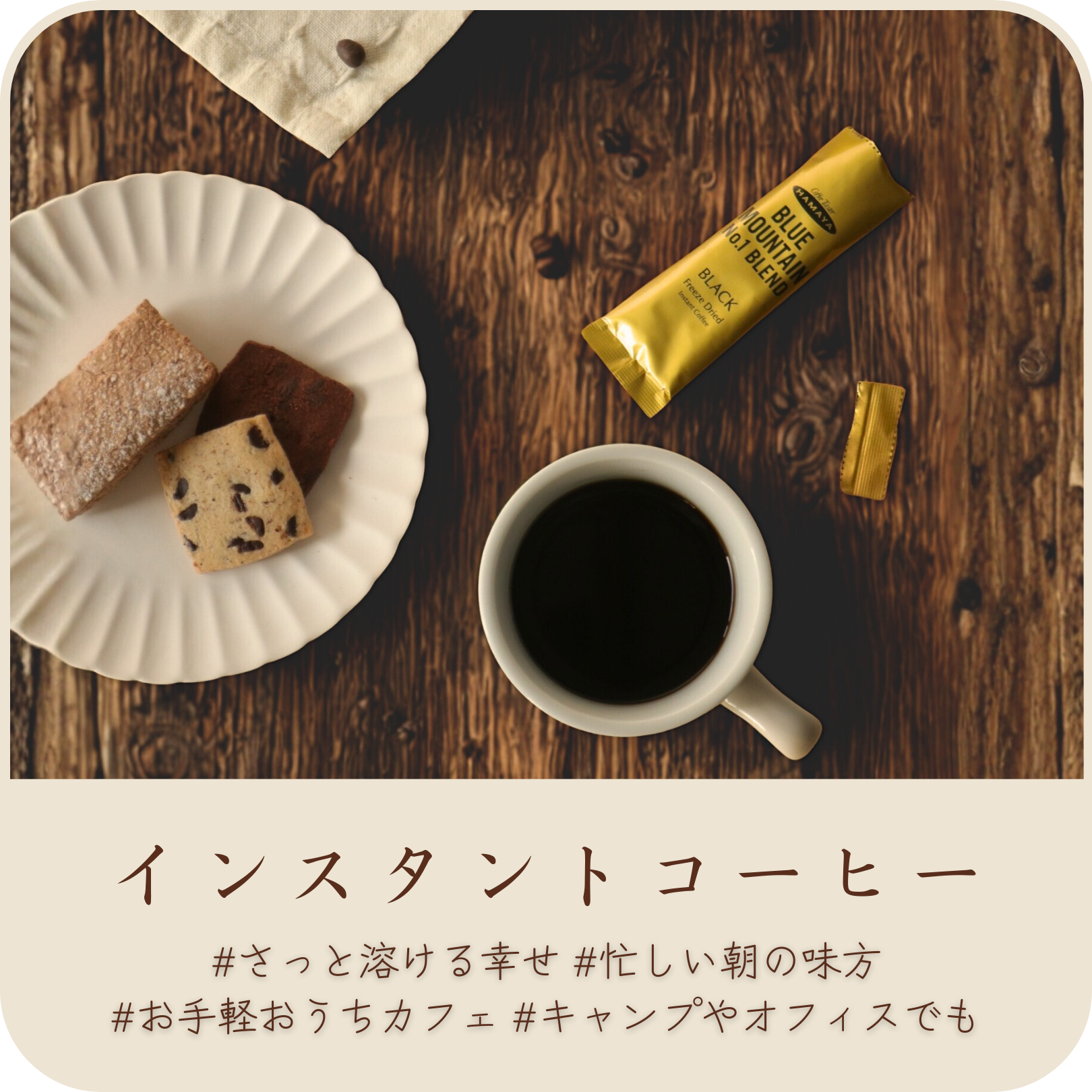 ブルーマウンテンの最高等級「No.1」を使用した、高品質なインスタントコーヒーです。香り高い豊かな風味とやわらかなコクを感じる、バランスの取れた味わいです。 ご自宅でもオフィスでも、お湯を注ぐだけで贅沢な一杯をお楽しみいただけます。 [分量] 本品1袋を入れたカップに熱湯(約140cc)を注ぎ、よくかき混ぜてお召し上がりください。